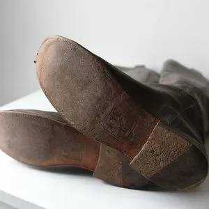 Tall Frye women’s riding boot in grey. Worked in leather. Very comfortable.