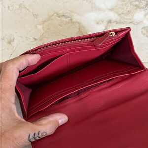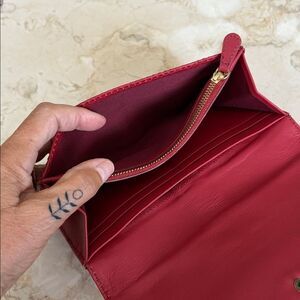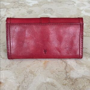 In excellent preowned condition beautiful Frye Claude leather wallet. Features a decorative brass buckle over magnetic snap.
