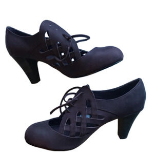 F-troupe lace up plum coloured heel shoe. Size 39.