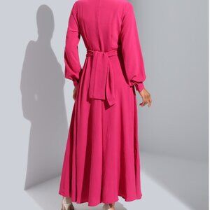 Fuchsia - Crew neck - Unlined - Modest Dress - long Sleeve - Maxi Sz 14 us