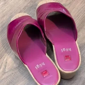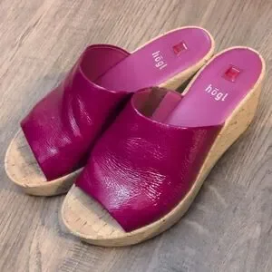 Elevate your look with 's vibrant fuchsia wedge sandals. These stylish shoes combine comfort and flair, perfect for any outing.