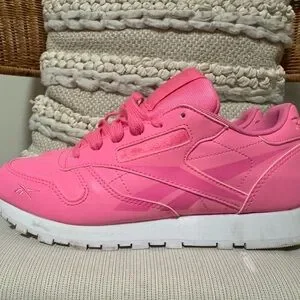 Worn once. They are a tad too small for me but this colour is everything !!!! Neon pink classic trainers.
