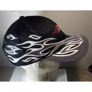 Fuel The Fire Black & Grey Cap Hat Embroidered Flames Adjustable Y2K