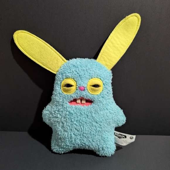 Fuggler funny ugly monster rabid rabbit. Blue with yellow ears. Snuggler edition. 2 front teeth with brown eyes. Signature Button on back. Measures approximately 12 inches high (to top of ears). 2018 Spin Master. See pictures for condition.