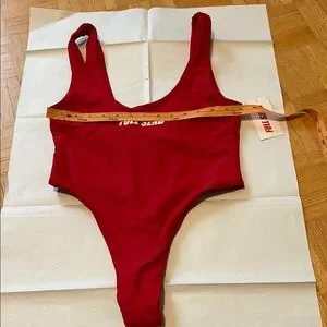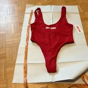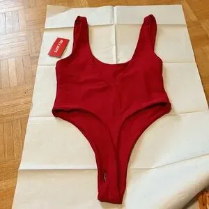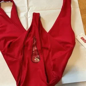 Dive into style with this vibrant red swimsuit from . Perfect for making a splash at the beach or pool.