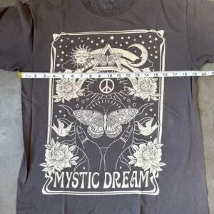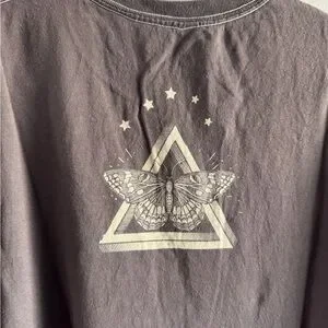 Stylish grey tee with unique graphic design. Perfect for casual wear. Size small. 100% cotton