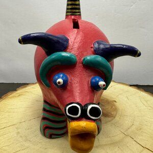 Fun Coin Bank by Giggles Pig Boar Bull Wood Red
