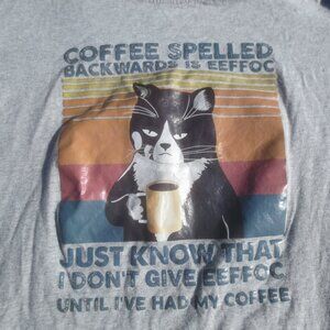 Fun Cute Adorable Humorous Coffee Cat T-Shirt - Size Large. In very good condition with no damages. This is an imported t-shirt sized at XXXL making it a North America large. It is completely unisex fashion friendly.