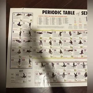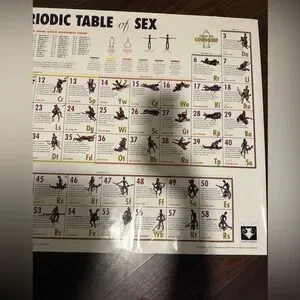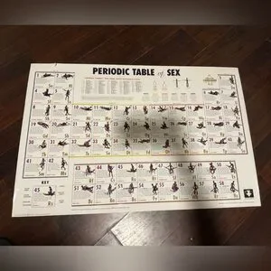 Unique and educational poster featuring a periodic table of fun positions. Perfect for adding a fun touch to any room, a party, or any event. Something fun with your partner.