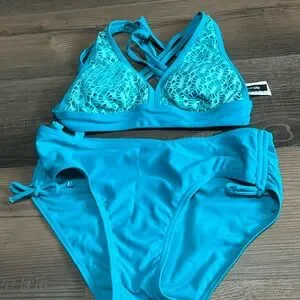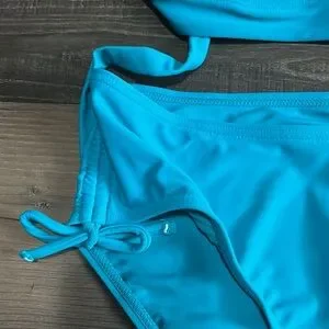 Both top and bottom size small. Removable pads on the top top. The bottom can be adjusted on the sides only worn a handful of times. In great condition.