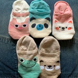 5 Pairs of cute fun Socks, Candy Color, Small Animal Cartoon Pattern Ankle Socks