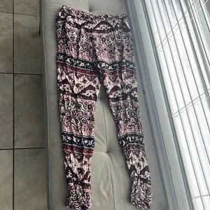 The colour is burgundy like, so comfy, “Thailand” type pants