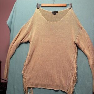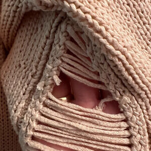 Great oversized sweater with peak a boo sides. One side has small boo boo that needs repair. If you are at all handy w wool or knitting you can fix no issue (see photo) Iโm not.