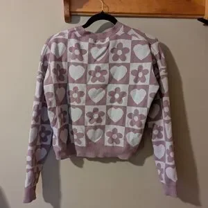 Size medium purple sweater with a cool pattern. Cropped fit. Excellent condition.