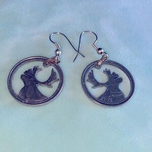 Unique and Funky Silver Canadian Quarter Cut-Out Earrings w Surgical Steel Hooks.