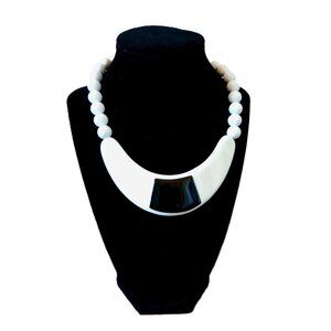 Style tags: 1980s, retro, vintage, rare, unique, fashion, power suit, bratpack, festival, college, party, black and white, acrylic, necklace, jewelry, wanted, trendy, on trend, instagram, tiktok, viral, 80s, bold, statement piece, geometric