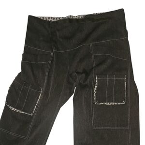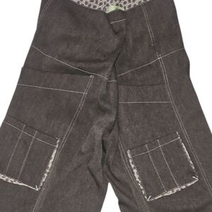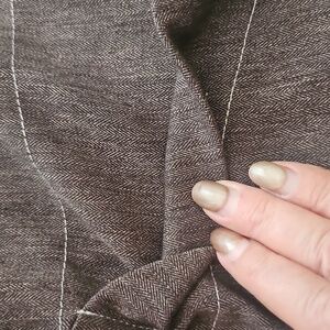 Double pockets in front, bottom ones with detailed fabric in white and brown. Soft fabric.