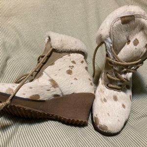 Funky winter boots, horse hair, suede, fluffy fleece inside. Super fun and comfortable. Size 6.5./7