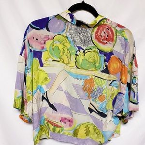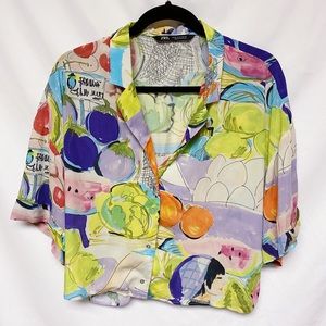 Patterned button down cropped Zara blouse, eye catching design and in near perfect condition