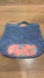 Periwinkle blue crochet shopping back with cat material at the bottom and daisy pattern on the inside. In great condition.