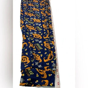 Large- Humorous Halloween Comfy Pants - Black And Orange - Candy Corns - Weight Lifting Pumpkin- Silly