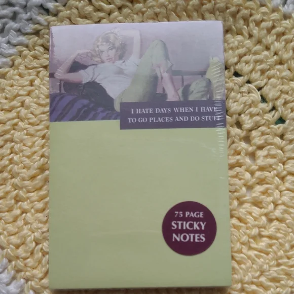 75-page sticky notes with a humorous design. Features a green color.
