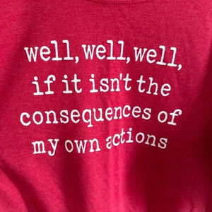 Funny sweater “well, well, well, if it isn’t the consequences of my own actions”