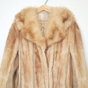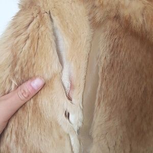 Description: Fur Coat with leather trim, 1 damage, rip. See photos