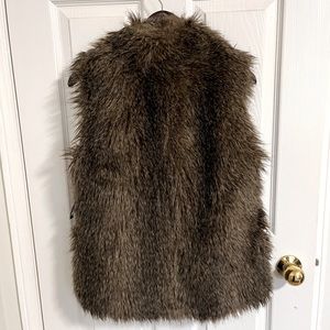 Waist length faux fur vest Used to have a belt that a lovely dog chewed up… Hooks inside to close