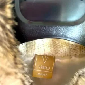 Fur top M size with a woolen collar and satin interior.