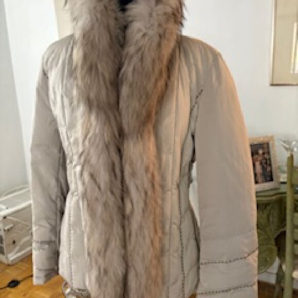 Gorgeous fur trimmed down jacket. Made in Italy. Great condition.