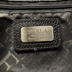 Furla Black Leather Grommet Satchel Bag Made in Italy, Pebbled Leather Tote with