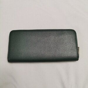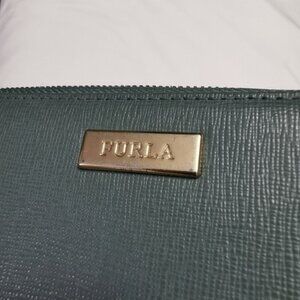 Furla genuine zippy long wallet cardholder in blue-green-grayish leather with champagne gold hardware.