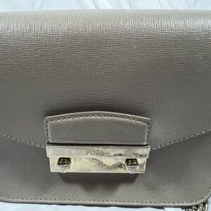 Furla Gray Crossbody Bag with Chain Strap and Metallic Clasp