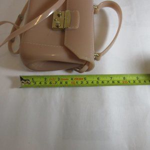 A petite Furla Nude handbag in shiny, translucent rubber. Short handle and optional shoulder strap. Hinged closure and unlined interior. Made in Italy. Pre-owned