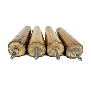 This is a set of four vintage, solid wood furniture legs. They are "tapered," meaning they gradually become narrower from top to bottom, a design element popular in mid-century modern furniture. At a height of six inches, these legs are suitable for a variety of furniture pieces such as coffee tables, end tables, cabinets, or sofas. The set includes the necessary hardware for mounting, making them ideal for DIY projects or for restoring and upcycling old furniture to give it a retro or classic look.
