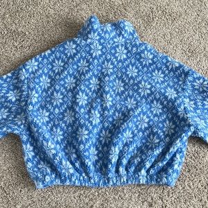 Furry Warm Winter Snowflakes Print Zip Sweater
