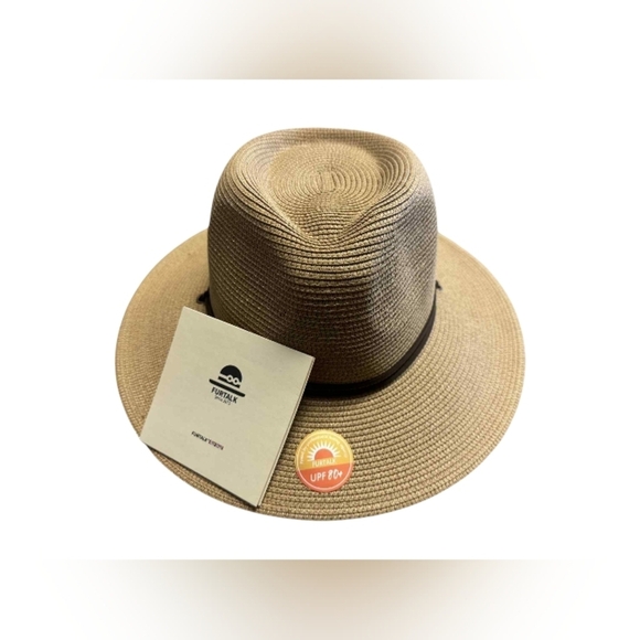 Khaki coloured straw hat adjustable in size has a drawstring.