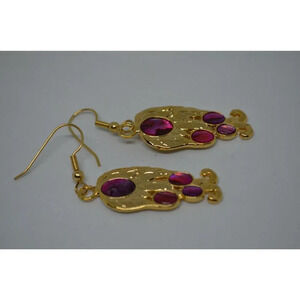 Eclectic hook pierced earrings with an unusual shape, possibly a stylized fuschia or other plant. Abalone inlay. Gold tone metal, not real gold. Outstanding like new condition. Beautiful bright jewelry. 1 1/4" long plus the hook.