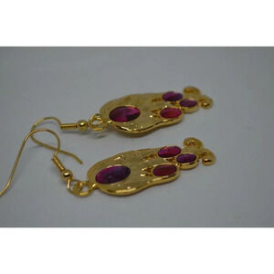 Fuschia Dangle Hook Earrings Abalone Accents Eclectic Abstract Stylized Floral