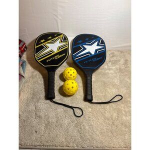 Future Stars Pickleball Game Set With 2 Wooden Paddles & 2 Yellow Pickleballs