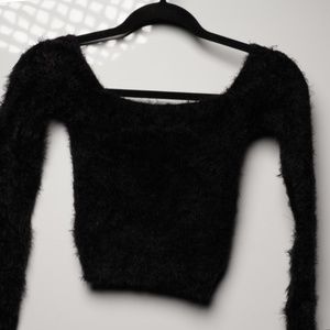 Fuzzy Long Sleeve Black Crop Top