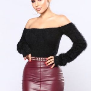 Natacha Off The Shoulder Fuzzy Sweater - Black