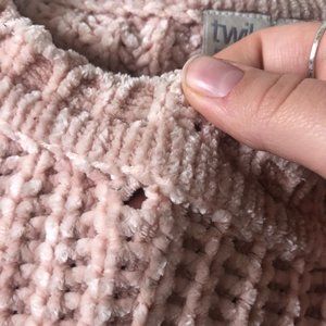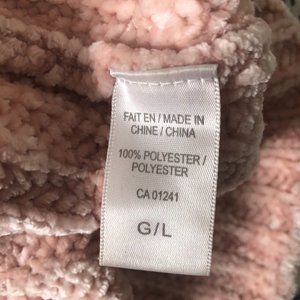 Fuzzy Pink Oversized Sweater! It is very soft and warm! I find it too warm for me so I rarely wear it! There is one small hole on the front that isn't very noticeable and could be fixed but I don't have any needles right now.