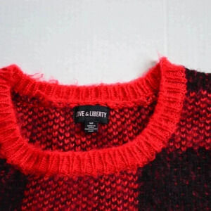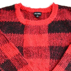 Fuzzy Red and Black Plaid Knit Sweater