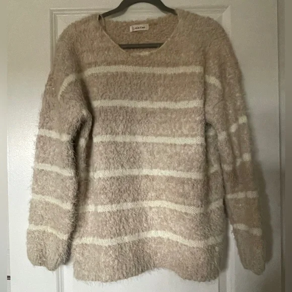Fuzzy striped sweater in fair condition.