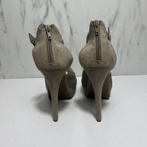 G By Guess High Heels Women 10M Taupe Tan Peep Toe Eyelet Suede Leather