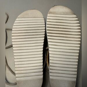 Stunning G Fusion sandals in a women's size 7. Handcrafted by a local Italian brand and purchased in Ischia, Italy. These elegant sandals feature beautifully intricate rhinestone detailing and wrap-around ankle laces for a chic, feminine touch. Perfect for summer events, vacations, or elevating any casual look. Lightly worn, in excellent condition. Truly a unique, high-quality piece you won’t find anywhere else!