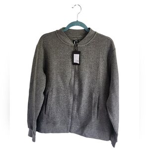 NWT Men's Grey Zip Up with Zig Zag Monochrome Pattern and Pockets. Nice classic style. Style is a little more dressy than most athletic zip up's. Great for work or going out. Pit to Pit 23" Length from Shoulder To Hem 24" Sleeve 23" #minamalist #classic
