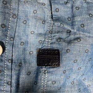 G Star Raw Denim Mens XL Casual Blue Chambray Button Down Shirt Dual Pocket